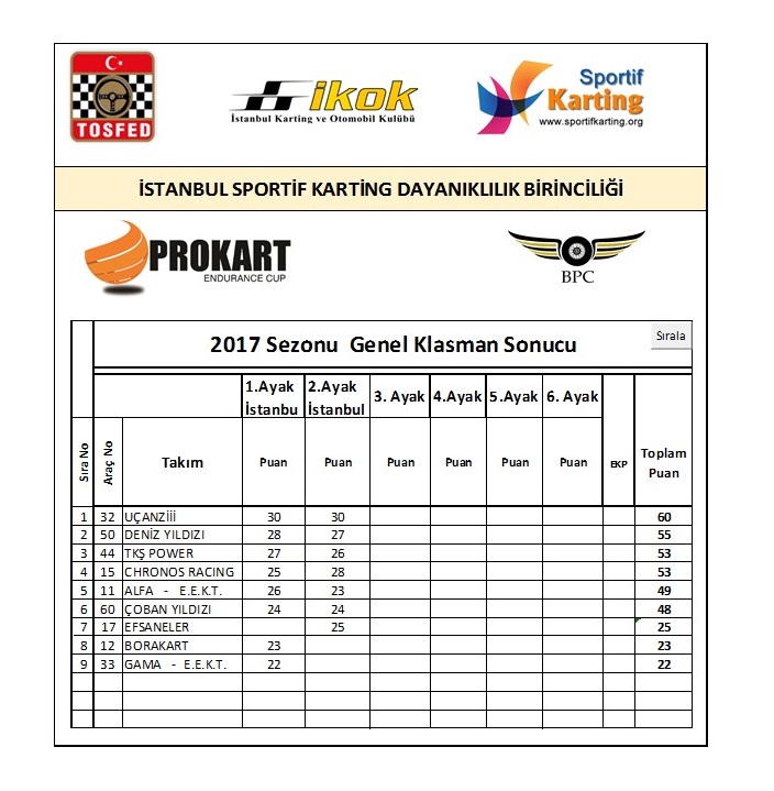 İstanbul Sportif Karting Dayanıklılık Birinciliği 2.Ayak yarışı 20 Ağustos Pazar günü İstanbul Autodrom Pistinde yapıldı. Yarış organizasyon kulübü İKOK- İstanbul Karting ve Otomobil Kulübü oldu. Prokart Bpc Takımlar kupası 13. Sezonunu yapmaktadır.